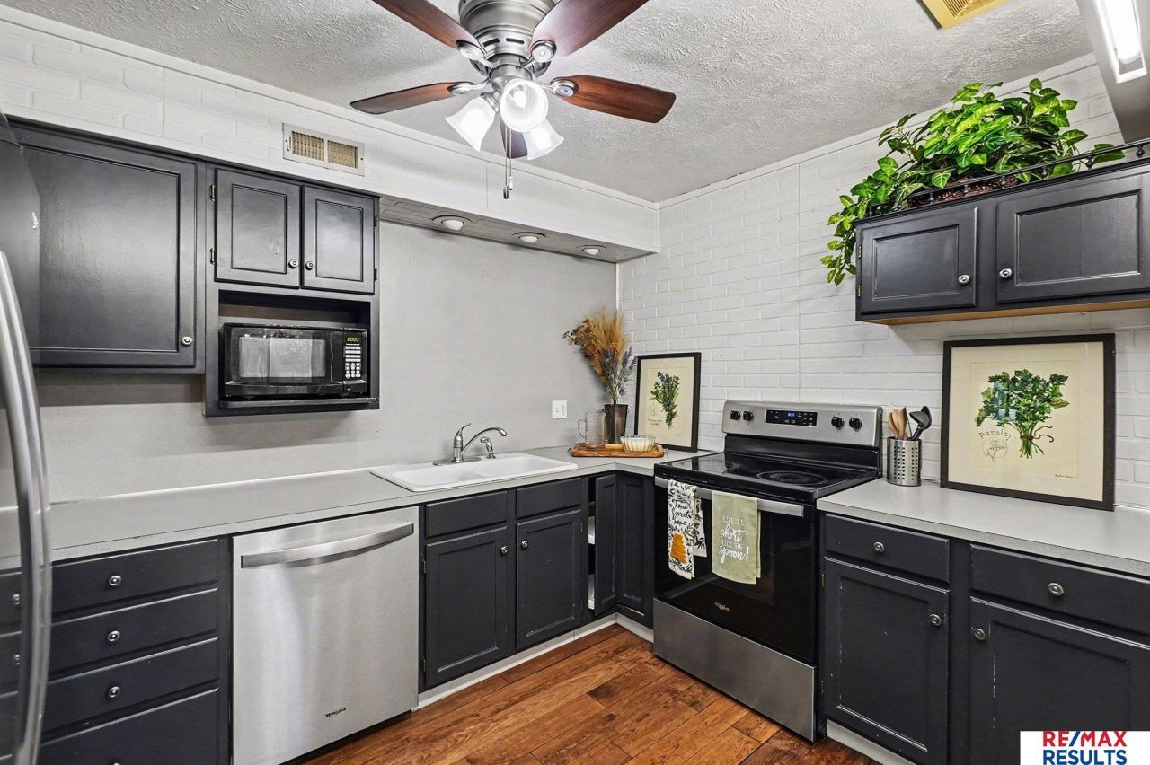 3 bedroom, 2 bath condo now available for a new owner at an incredible price! The private primary suite will be your personal retreat, complete with a 3/4 bath that includes a beautiful tiled shower, a large vanity & elegant fixtures. This condo unit has been well-maintained and is full of updates, and has a rare in-unit washer and dryer! You'll enjoy the private deck overlooking the common area and beautiful engineered wood floors in the main area. Updates include: a newer a/c and furnace, washer/dryer in the unit, newer kitchen appliances, & both bathrooms updated. All around amazing opportunity for a new homeowner. So much space for the price! Quick access to the interstate and W. Dodge. HOA amenities include: community pool, exterior building maintenance and painting, common-area upkeep, and lawn/snow removal. All meas. are approximate.
