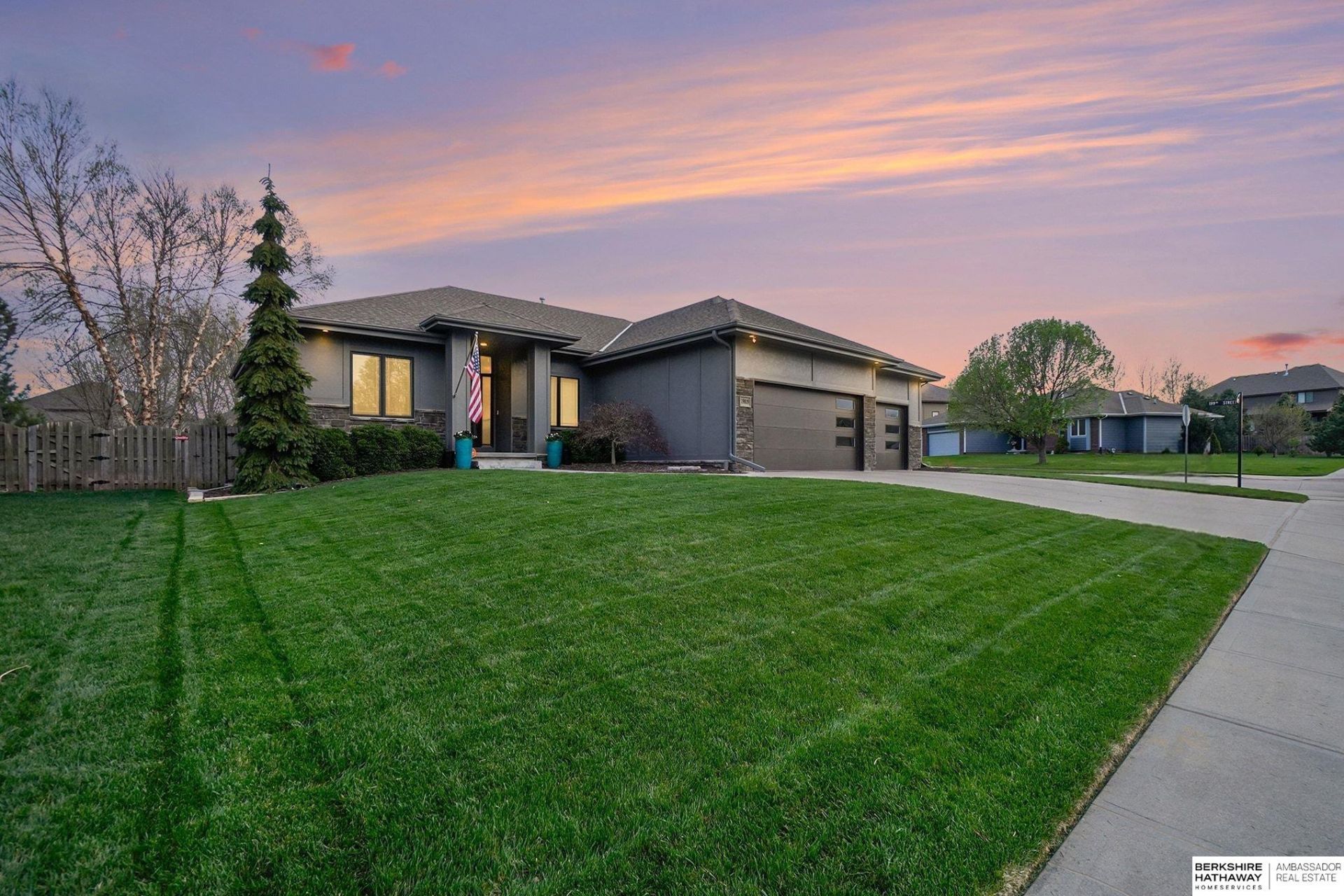OPEN 4/18 & 4/19 11am-12:30pm! Built by Al Belt Custom Homes, this one-owner ranch sits on an oversized, fully fenced corner lot in Pacific Woods. Designed with 10' ceilings, custom cabinetry, soft-close drawers, and a hidden pantry, the home blends style with thoughtful function. The spacious 3-car garage offers tandem space for extra storage! The private primary suite connects seamlessly to the laundry and features dual sinks, a large walk-in closet, and a walk-in shower with dual shower heads and convenient bench. Two additional main-floor bedrooms on the opposing side of the home share a full bath. The finished lower level boasts a massive rec room with wet bar, two bedrooms, and a 3/4 bath. Enjoy a backyard oasis with professional landscaping and hardscaping by Canopy Gardens, including a covered patio, hot tub, paver patio, and fire pit - perfect for relaxing or entertaining! Located in the desirable Elkhorn South school district.