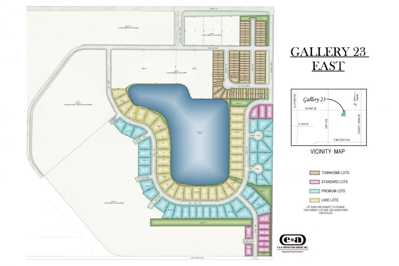 Non builder attached lake lots. Do not miss the opportunity to own your own lake lot in Gallery 23 East and have a custom built home. This lake is for the enjoyment of non motorized water sports and activities. Lake home sites allow for beaches, docks, and swimming areas right from your own backyard. Gallery 23 is on the Southwest East Corner of Hwy 275 and Hwy 30. Easy Access for quick travel to Omaha, Valley, Elkhorn, and Blair. The area has a tentative plan for easy living life style with shops, businesses, and restaurants within walking distance at the entrance of the community. (All Businesses still TBD) Phase 1 home sites are build-able now with full utilities on site and paved streets; just waiting for you to pick your dream home site. Contact agents for Builder availability to design your dream home as well as choose your site.