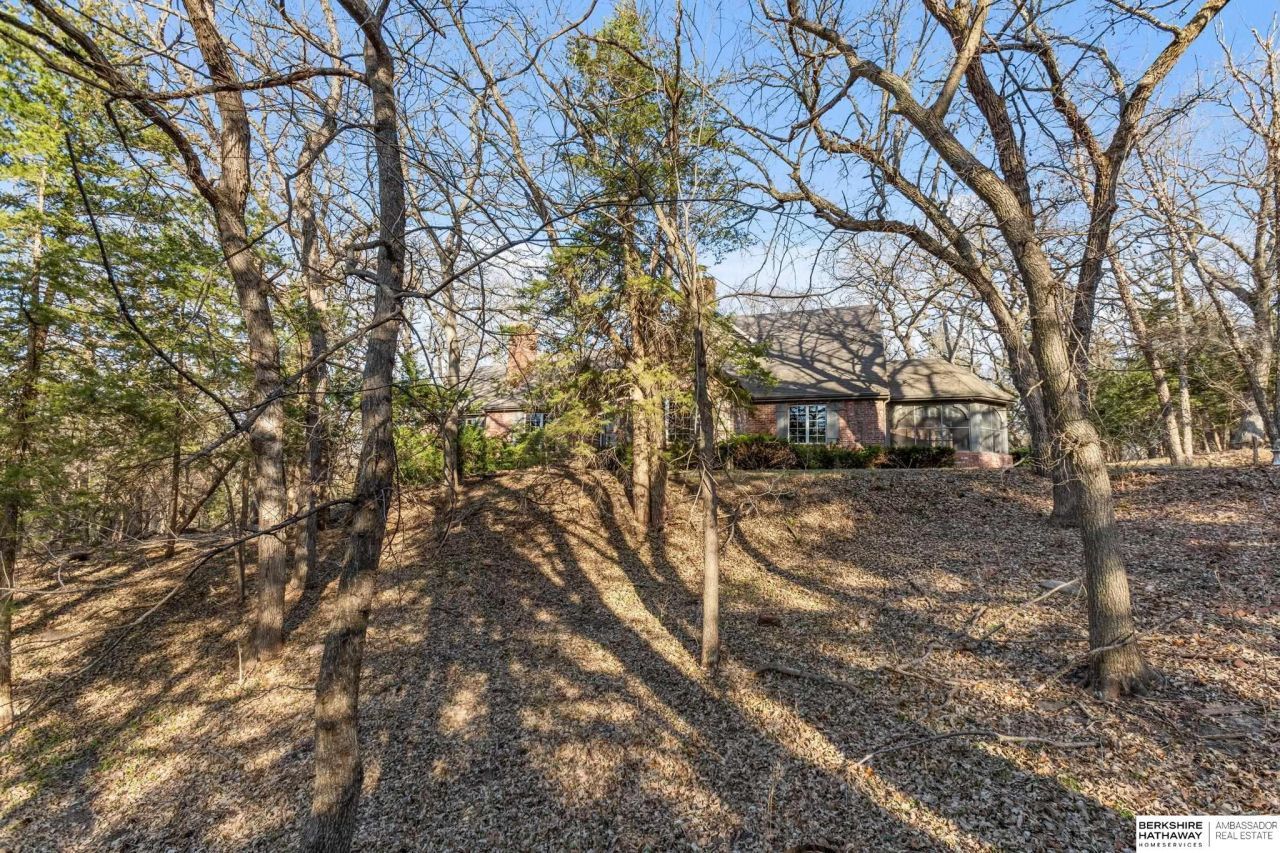 Tucked away on 3.46 wooded acres, this enchanting property feels like something out of a storybook. Surrounded by mature trees and natural beauty, it offers a peaceful retreat in a quaint neighborhood just minutes from Omaha. With an abundance of wildlife right outside your door, a neighborhood fishing pond, and a low mill levy, this is the kind of place where life slows down and simple moments shine. The cottage-style home is full of charm and character, with rich wood floors, beautiful brick accents, and stunning wood-detailed ceilings that create a warm, inviting feel throughout. French doors open to a lovely brick patio-perfect for quiet mornings with coffee or cozy evenings under the trees as deer and birds pass by. Everywhere you look, thoughtful details and timeless touches make this home feel truly special! There's so much more to discover around every corner. You won't want to let this one of a kind home pass you by. You won't find another! Home being sold as is.