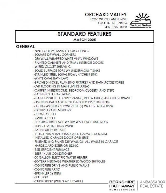 Orchard Valley Inc builds homes that work for real life - with room to grow, space to gather, and features families actually use. Located throughout the Omaha metro, these homes offer huge square footage at affordable prices, making them ideal for busy households. Open-concept layouts with 9' ceilings create bright, connected living spaces, while durable LVP flooring handles everyday wear and tear. The kitchen comes ready with solid-surface countertops, painted cabinets, stainless steel appliances, and generous storage - perfect for weeknights or weekend hosting. Outside, enjoy a concrete patio, full sod, and sprinkler system, plus 92% energy-efficient heating and cooling to keep monthly costs predictable. From homework zones to movie nights, Orchard Valley homes are designed to support the way families live today. -More space for your family - without stretching your budget. All photos are artist renderings and not actual to plans, Home to be complete in Dec 2026