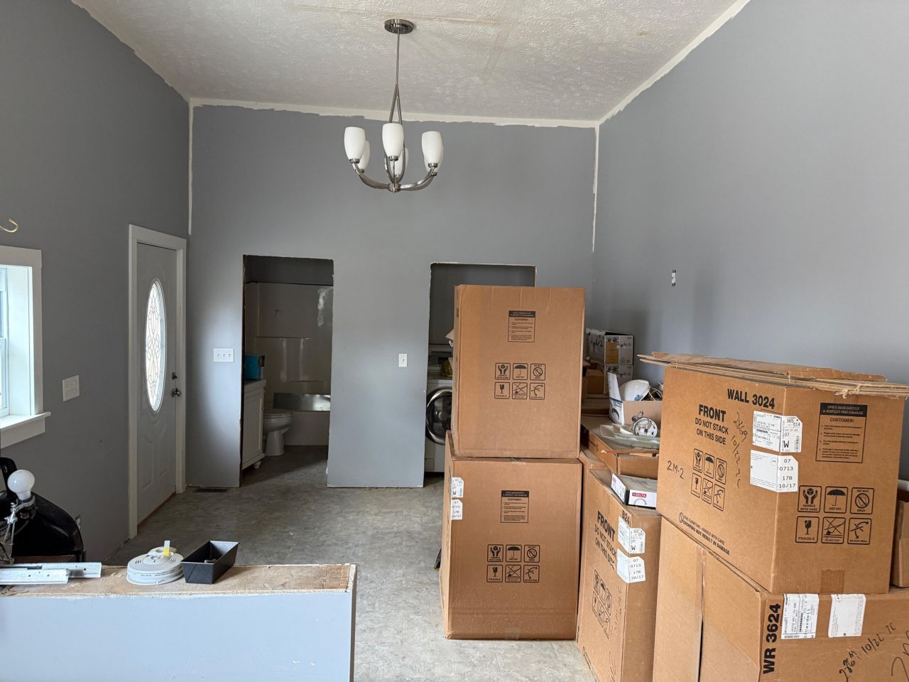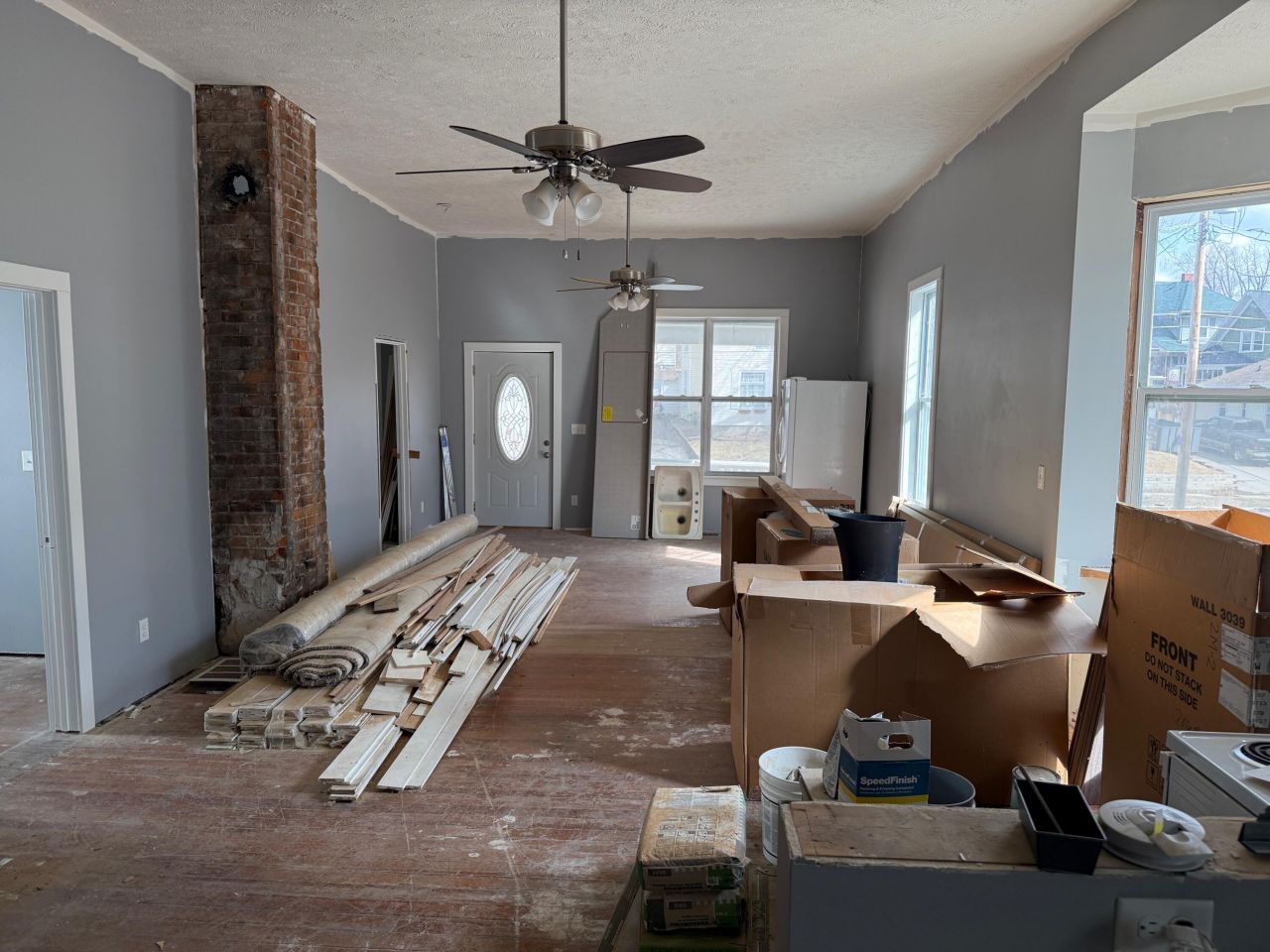 3 bedroom apartment on main floor practically new and close to finish- all cabinets are there, but need to be installed. Needs paint and flooring. Upstairs 1 bedroom apartment is rented and tenant would like to stay.