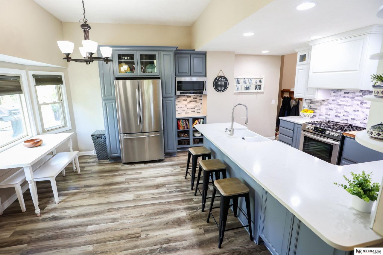 SCREAMING BUY in Fontenelle Forest!! Are you looking for an exceptionally well-built, solid home that offers privacy, nature views, and room to truly spread out? This is it. With 3,200+ sq ft, TWO spacious primary suites, and primary-level laundry, there's room for everyone - even the long-term guest. The beautifully remodeled kitchen shines with new soft-close cabinetry, quartz countertops, gas stove, and updated appliances. The massive family room features soaring ceilings and a cozy gas fireplace, creating the perfect entertaining space. Enjoy the sunrise and wildlife on the wrap around deck! Major Updates already done; new roof, siding, driveway, plumbing, electrical, flooring and more. Non-conforming 4th bedroom, gym or office in basement. Close to Offutt Air Force Base and walking distance to Fontenelle Forest hiking trails. Oversized 2 car garage w/storage plenty of space for your hobbies! Buyers looking for space, privacy, and long-term value will want to act quickly!