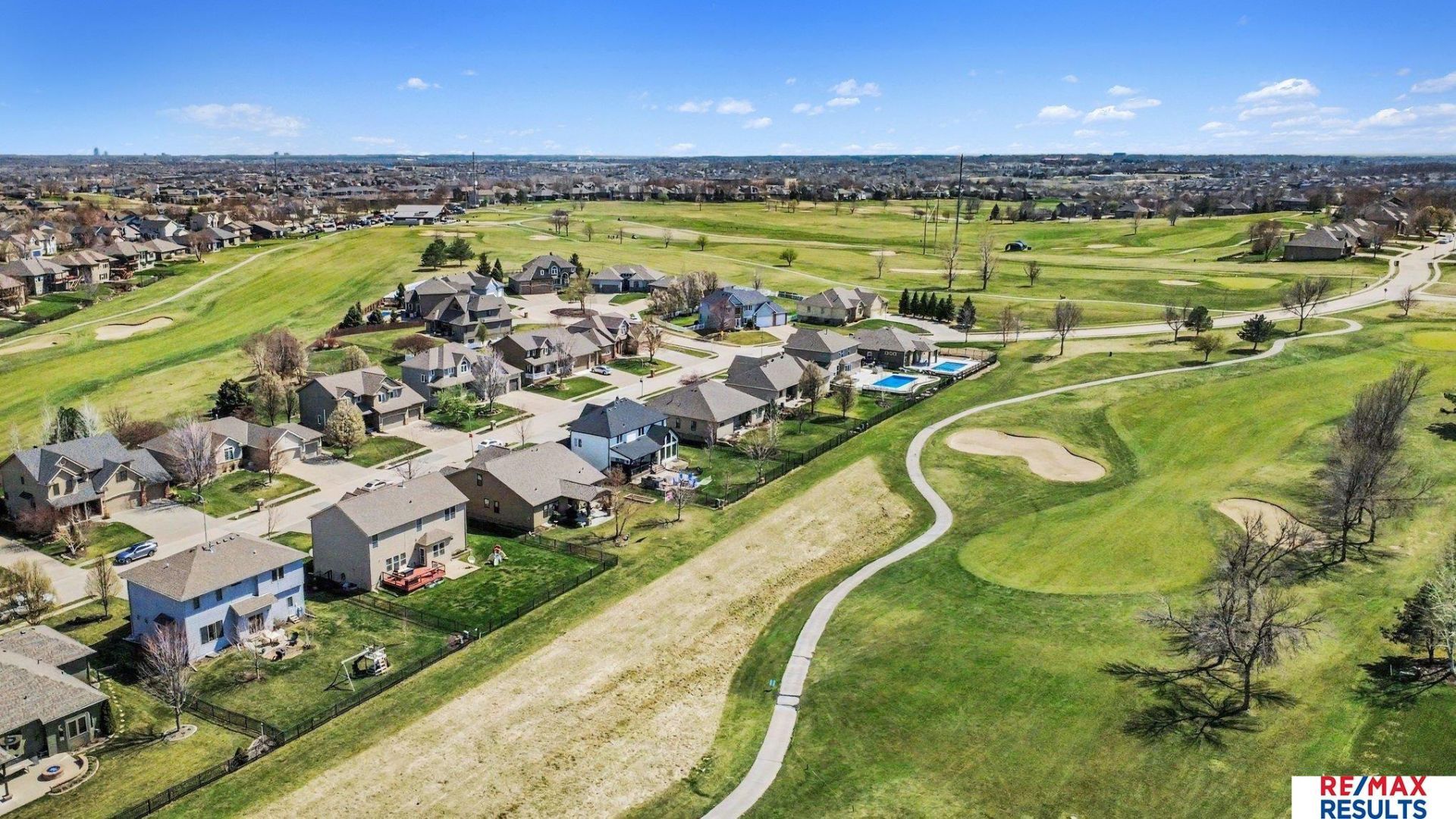 Nearly 4000 finished sqft, this immaculate custom home is a golfer's paradise! Step inside to discover a desirable modern open floor plan designed w/elegance & entertaining in mind. It boasts arched entryways & designer colors throughout. You'll love the massive eat-in gourmet kitchen with an abundance of cabinetry, quartz counters, dbl oven, island, huge w/i pantry. Large living room w/gas fireplace. Formal dining/flex room. Escape to your luxurious primary suite w/huge w/i closet, tiled w/i shower, oversized soaker tub. Spacious bedrooms, convenient 2nd fl laundry. The lower level features a family/rec room, 5th bedroom, 3/4 bath, office/flex room & storage room. Premium .23-acre, level, fenced lot w/sprinkler sys. Relax on your deck or patio to enjoy the stunning views overlooking the 8th tee box of the Sandstone course. New roof July '25, deep garage, radon mitigated. Better than new & shows like a model. Great location near parks & Flanagan Lake. Bennington schools. Welcome Home!