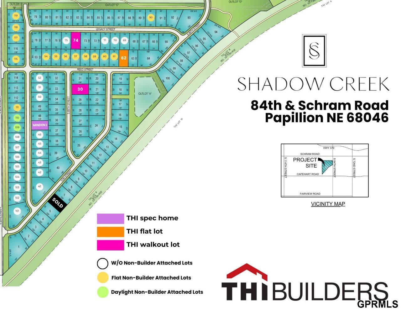 Experience the best of Papillion living at Shadow Creek, a premier new community by THI Builders, located off 84th Street in the Schram/Capehart area. This sought-after neighborhood offers easy access to Midlands Hospital, Shadow Lake Towne Center, and Walnut Creek Recreation Area, combining everyday convenience with outdoor recreation and lifestyle amenities. Choose from builder-attached lots featuring ranch and two-story floor plans, with builds starting in the low 400s and up and a minimum of 1,500 sq. ft. on the main level for ranch homes. Lot sizes average 72 to 85 ft of street frontage, offering generous space and beautiful curb appeal. Each home reflects THI's signature craftsmanship with open layouts, designer finishes, and premium materials throughout. Located within the Papillion La Vista School District, Shadow Creek is the perfect place to call home. Our process is simple-start with a discovery call, tour and select a plan, and schedule a price-out to begin your build.